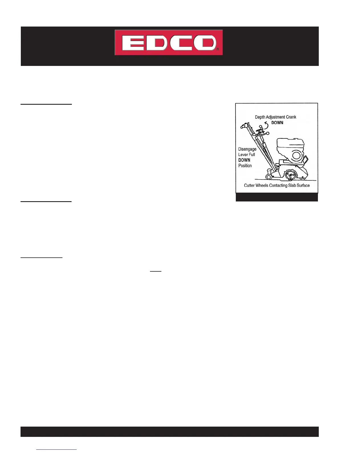 wheels contacting the slab). Continue adjusting the depth of cut until the