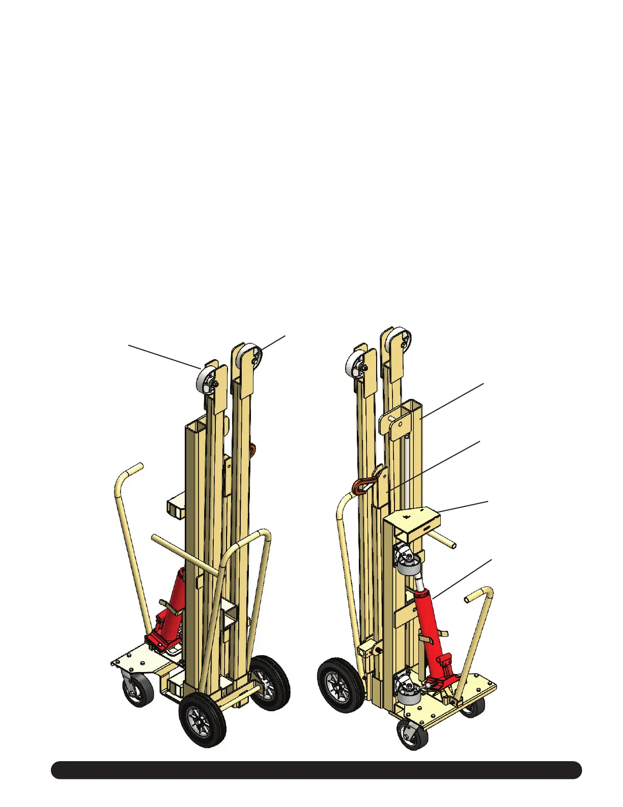 the jack. Once the jack is compressed, secure the jack handle tube on the hoist mast and lift the
