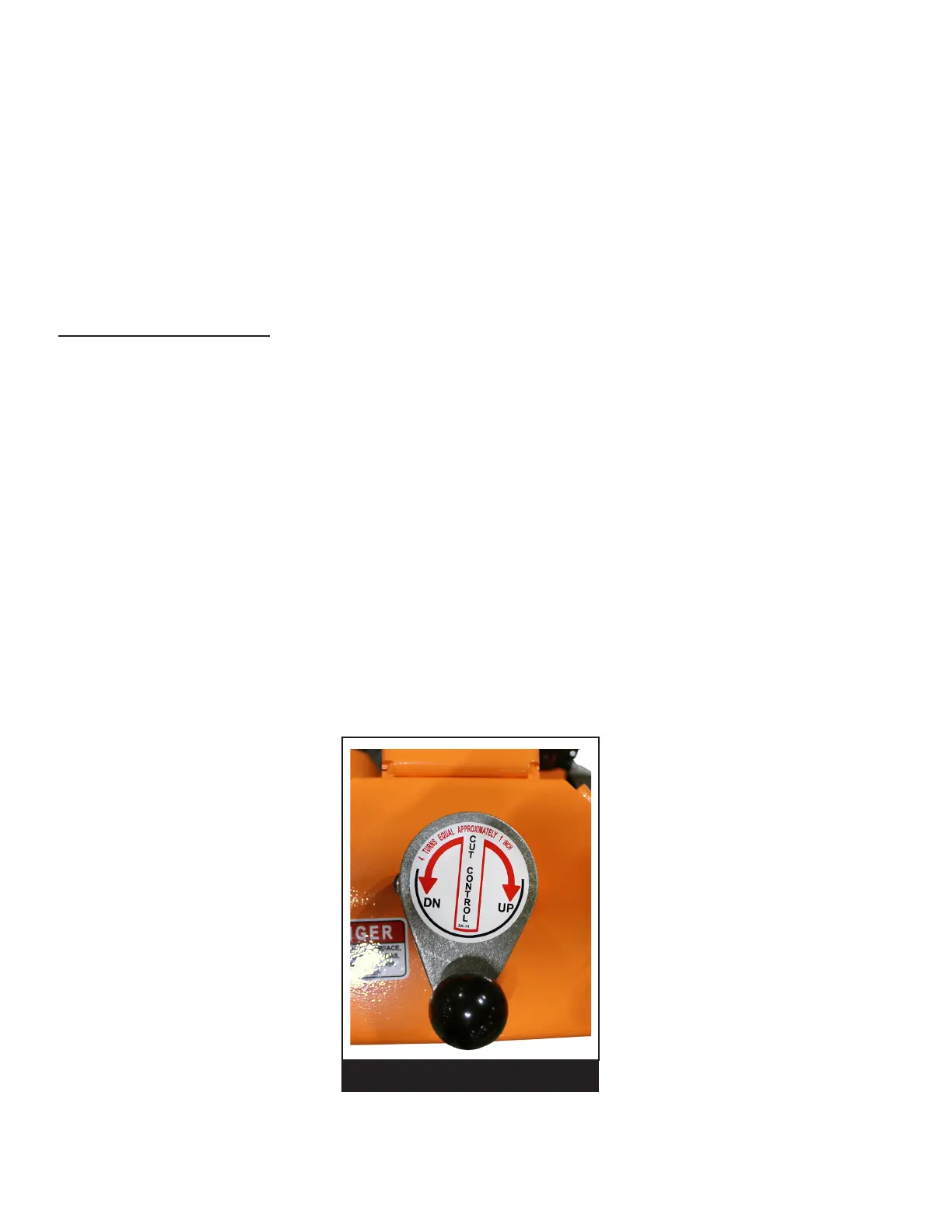 Lift the knob to unlock and turn the handwheel clockwise until the blade is clearly o the ground.