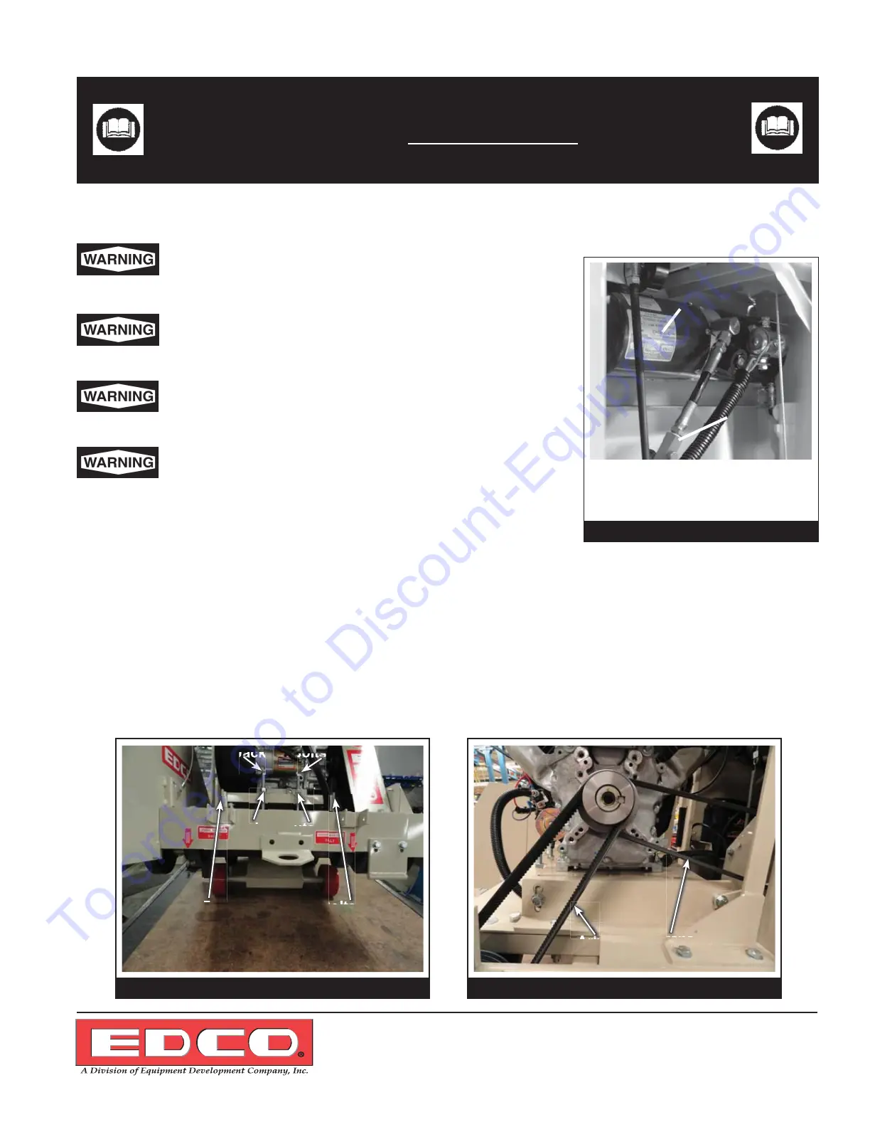 • Proper belt tension must be maintained to transmit the engine power to the cutting blade. Slipping belts will over