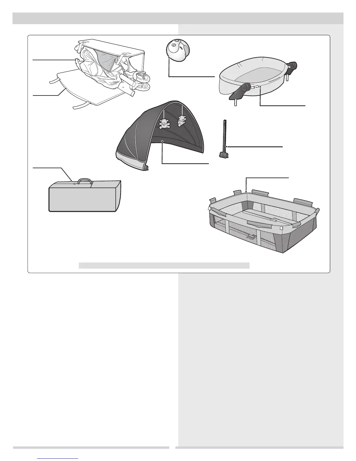 Notes: Accessory bag comes sewn on play yard. Toys may vary.