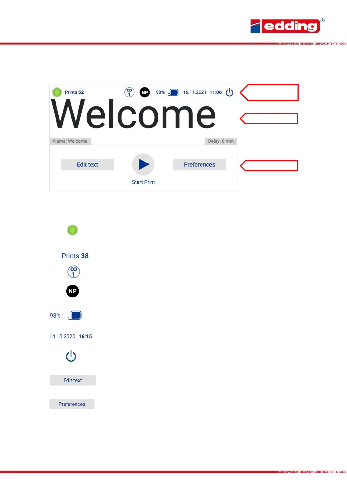Remaining volume of current cartridge in %. From <10% the warning “low