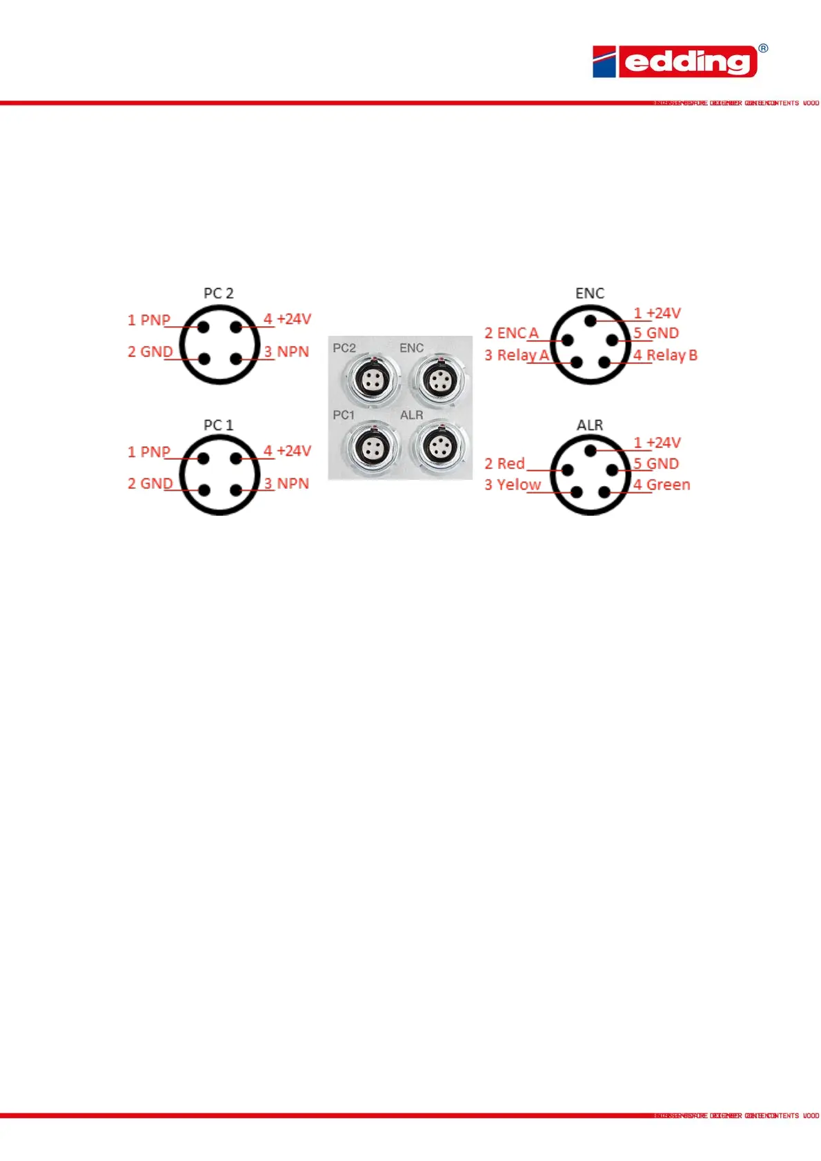 to connect your genuine edding accessories photocell, encoder and alarm light. The ports are