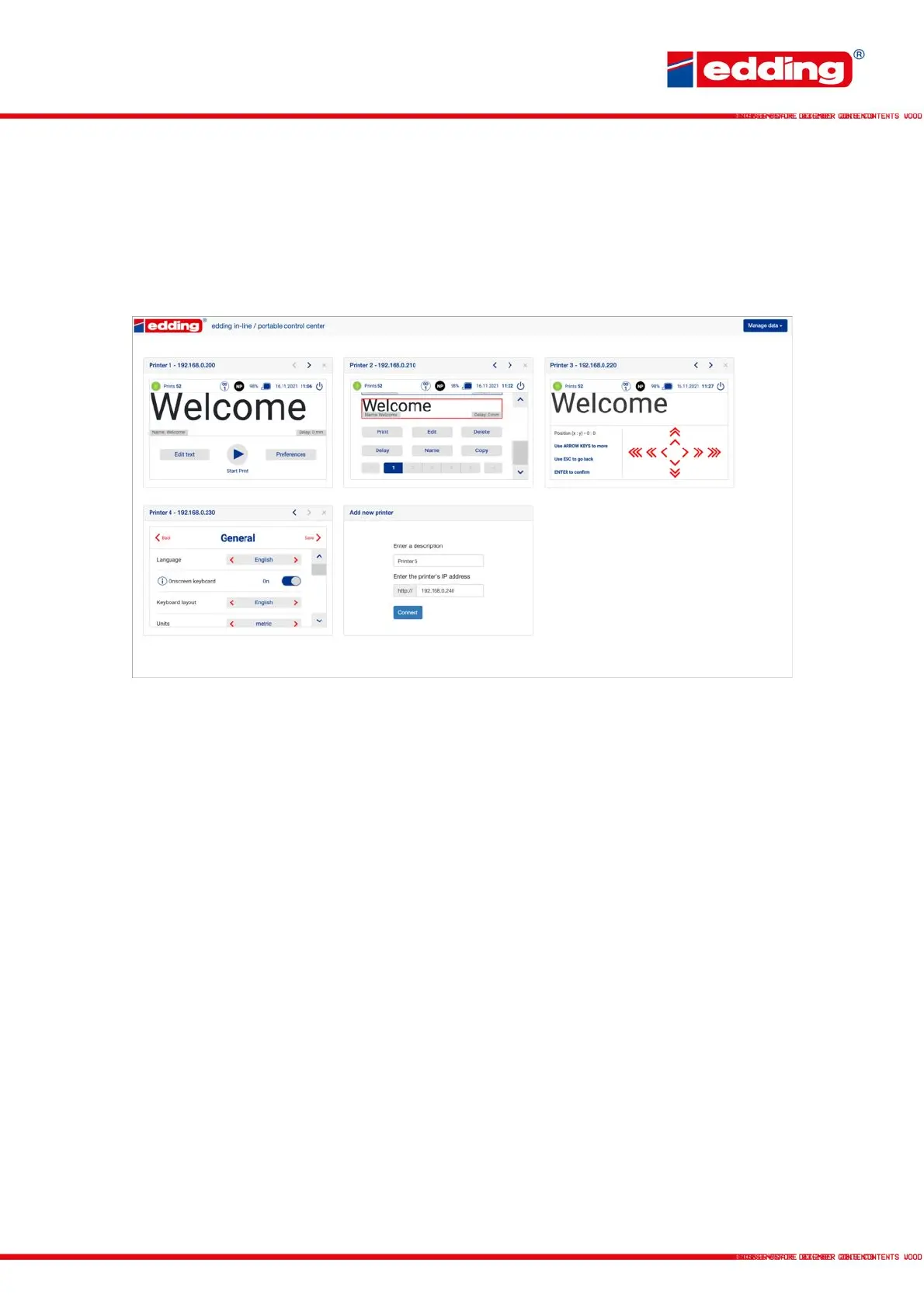 Any number of printers can be added by entering the printer’s IP-address. They can then be operated