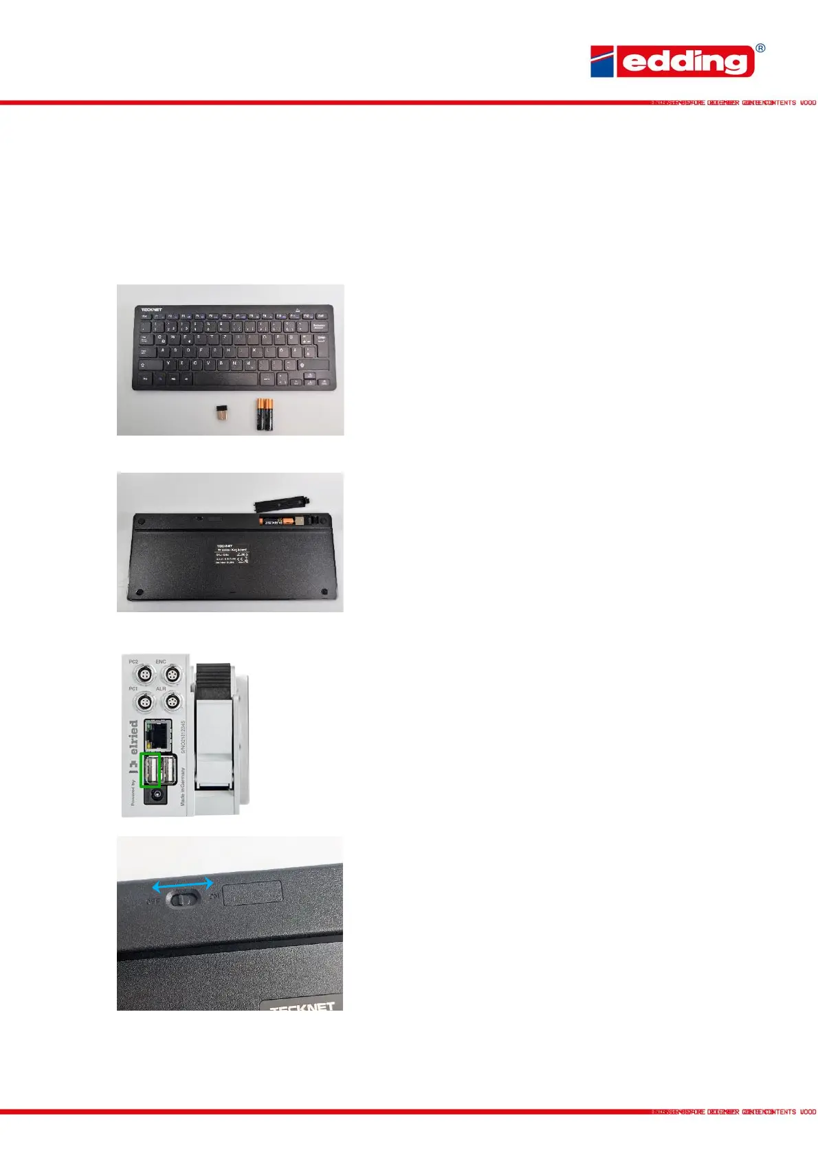 Keyboard, USB receiver und 2x AAA batteries.