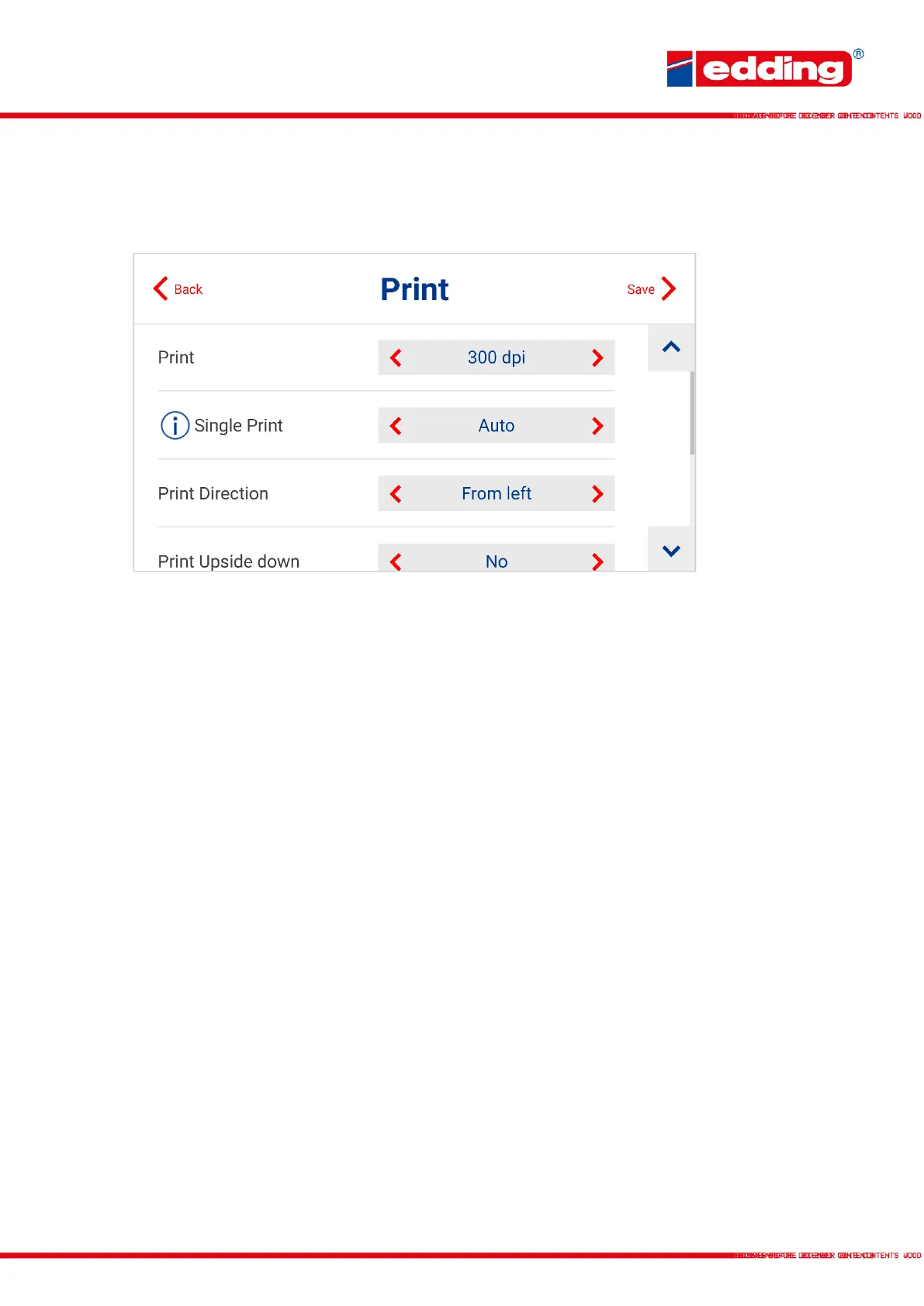 Print direction: Selection of the print direction, defined from the rear of the printer. “From right”