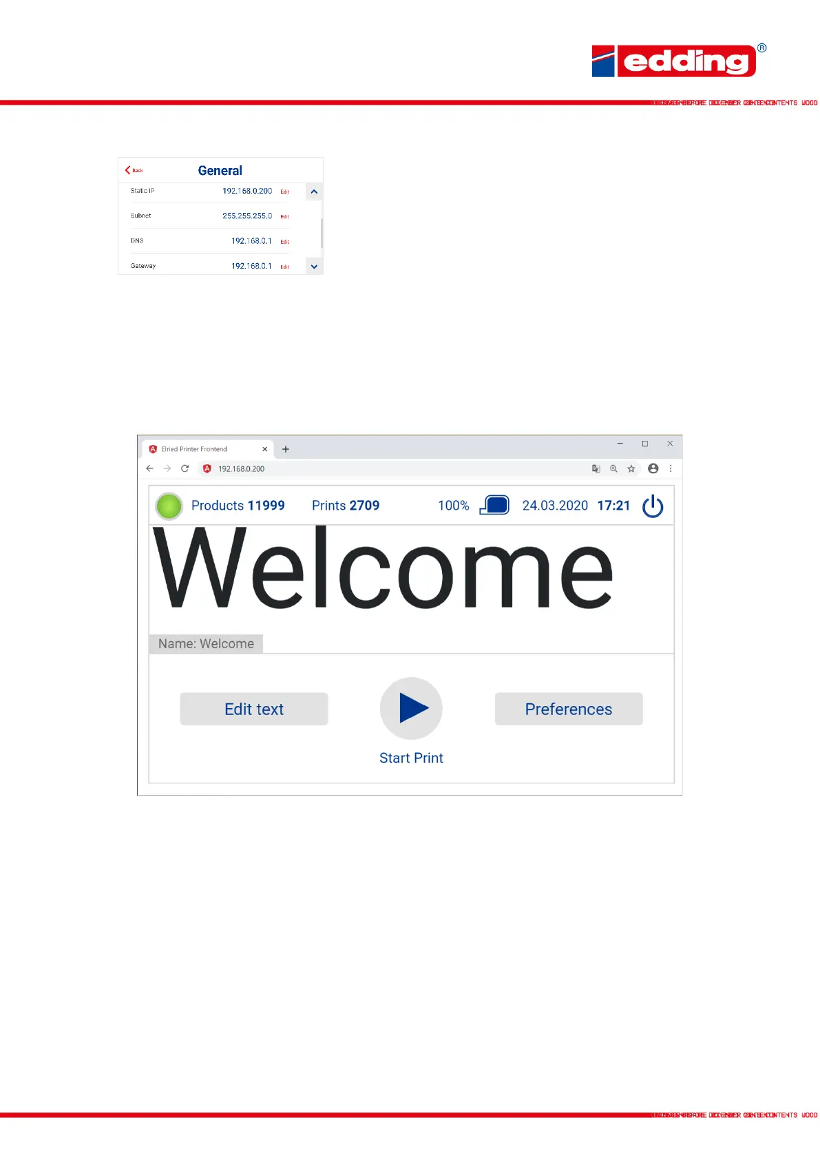 as on the printer itself. From here, the printer can now be monitored, new texts can be created