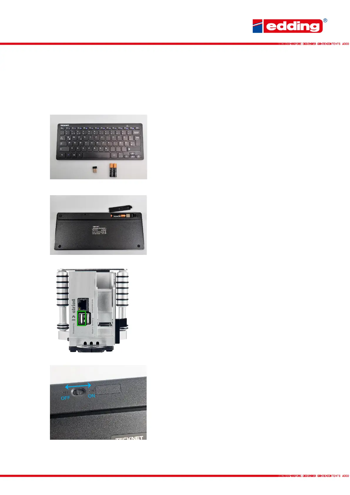 entering new texts. It communicates wirelessly with the printer by plugging the small USB