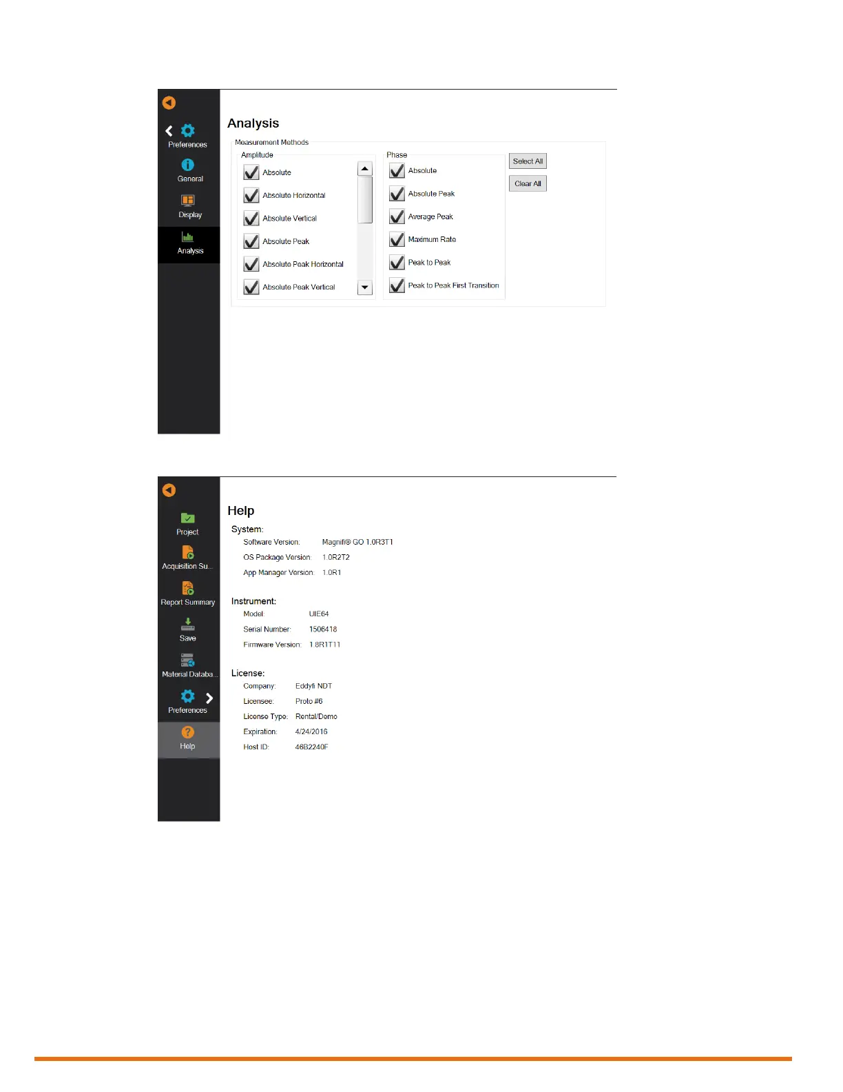 eddyfi Reddy - Figure 3-3 Analysis Preferences; Figure 3-4 Help