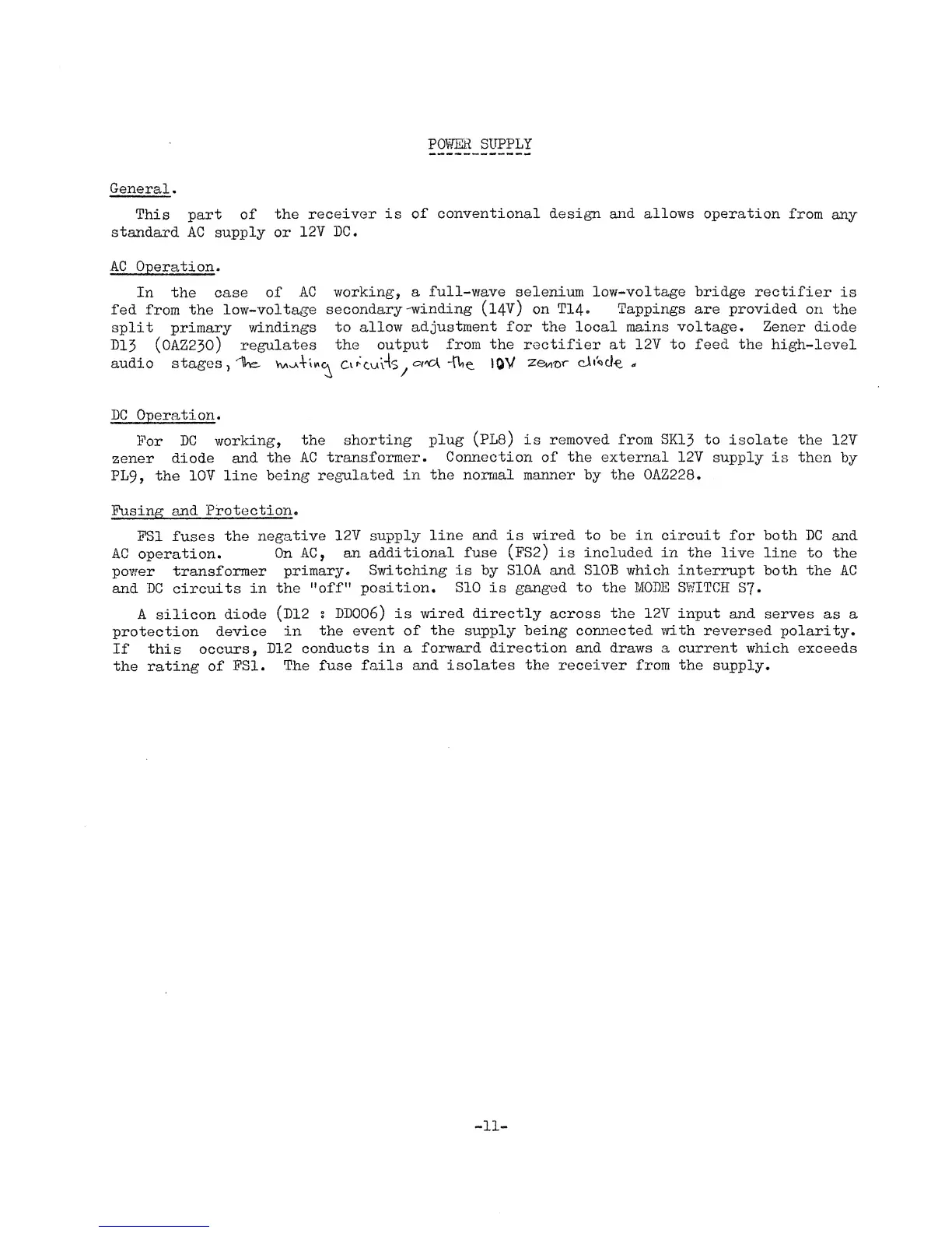 Eddystone 990R - Power Supply; General; Fusing and Protection