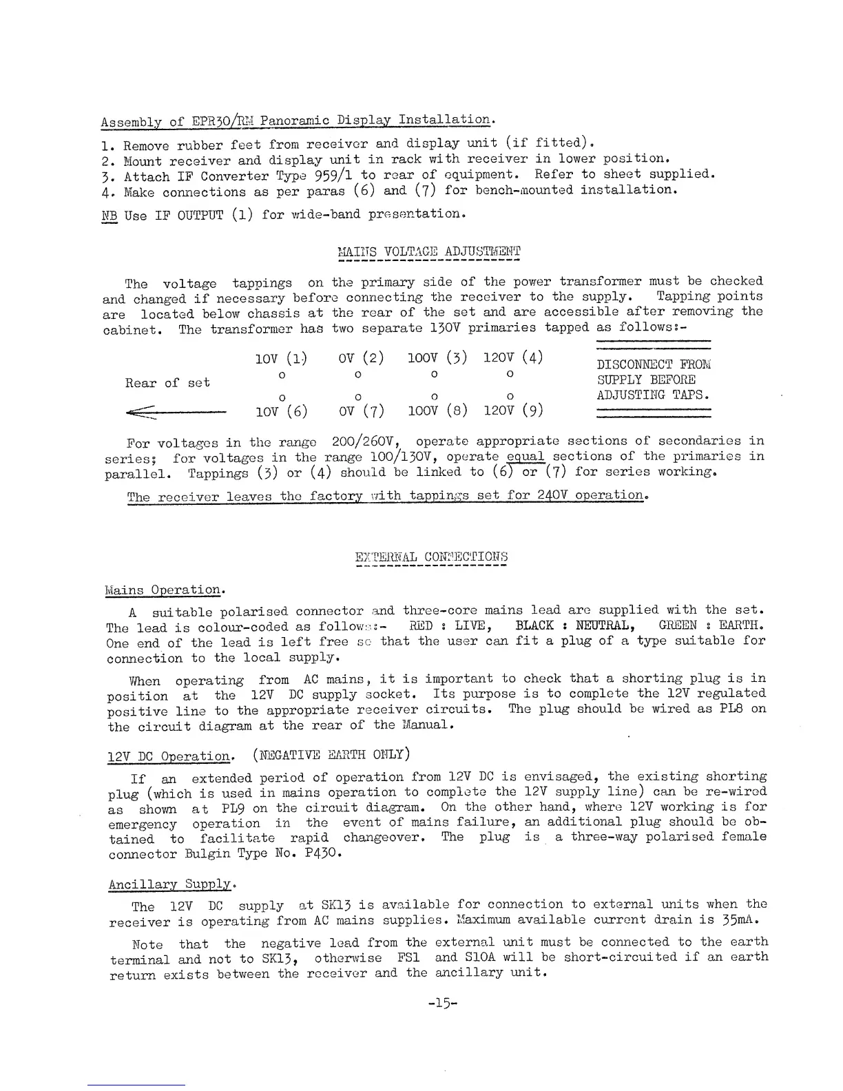Eddystone 990R - Mains Voltage Adjustment; External Connections