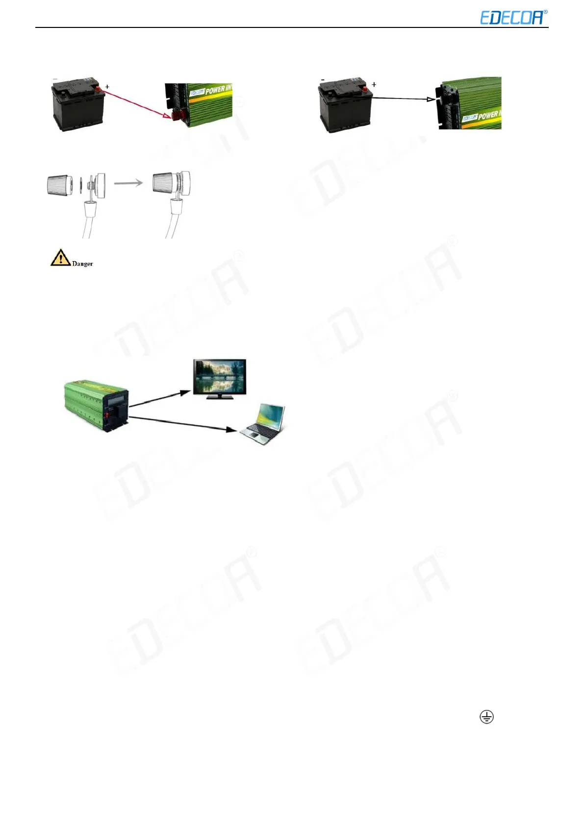 2.The connections between power source (battery) and inverter cable terminals must be securely mounted.