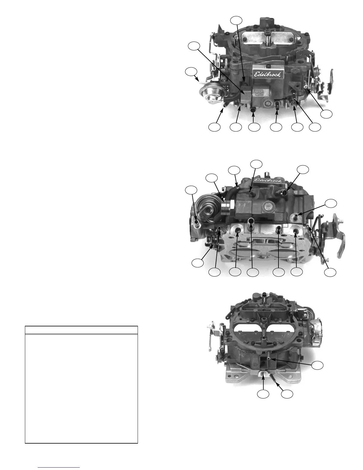 opposed bolts. Use stock mounting bolts or Edelbrock Q-Jet Bolt Kit