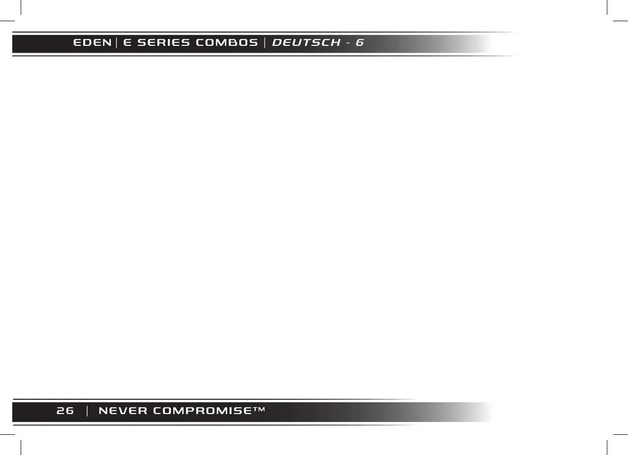 Ausgangsleistung • 50 Watt Verstärker • 1 x 10 Zoll Eden-Design 70 W Bass-Lautsprecher Lautstärkeregelung • Je 1 Regler für Vorstufe