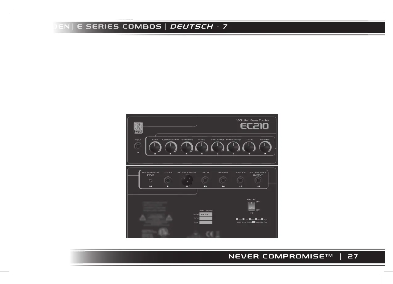 Diese Combos der Eden E-Serie verfügen über eine 180 W Endstufe, die eine ausreichende Lautstärke auch für