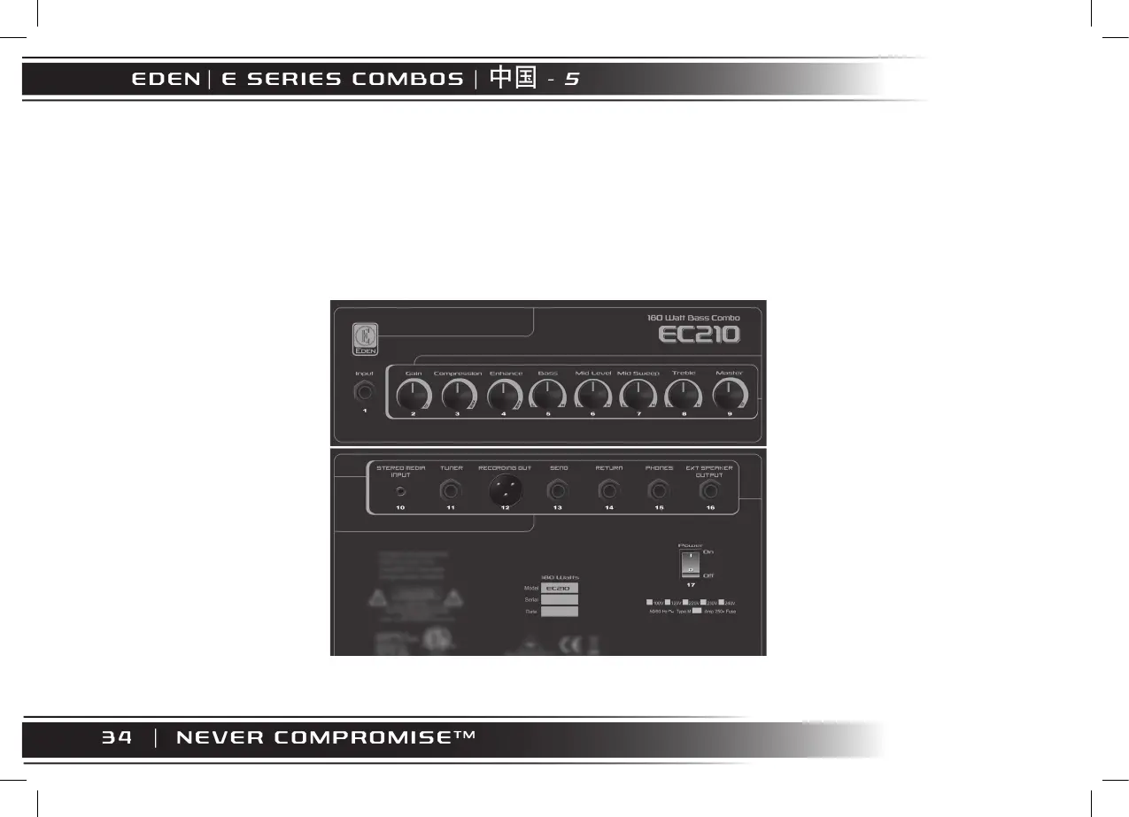 这些Eden的E系列组合都有一个共同的Eden 180瓦放大器,为正式的排练或小型JAM演奏提供足够的音量。箱体的设计是