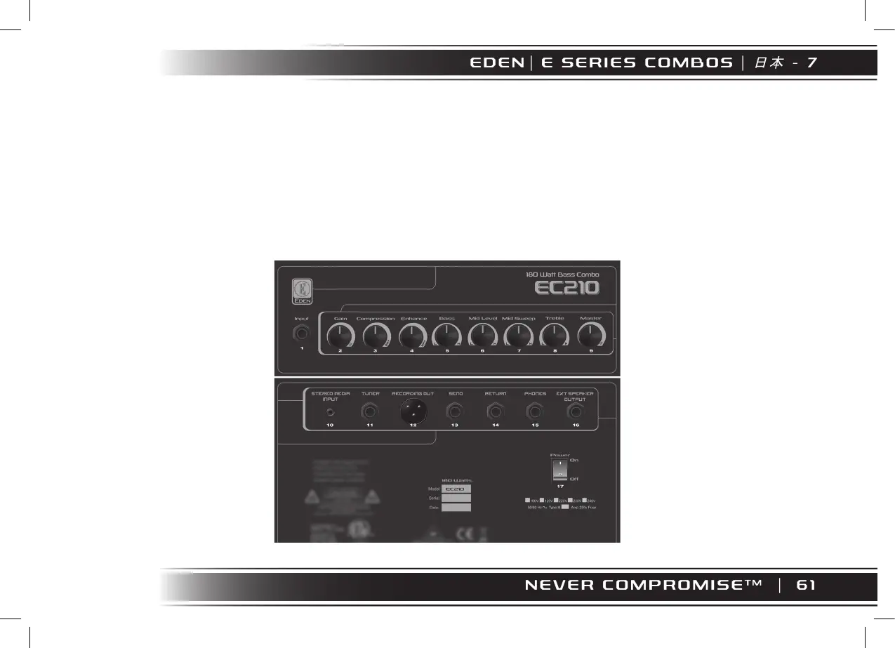 EDEN のE シリーズのコンボは、共通の180W のEDEN アンプが搭載され、本格的なリハーサルや小規模なジャ