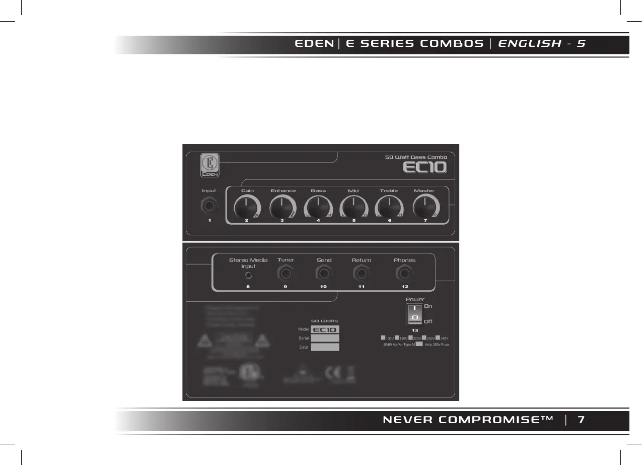 Eden EC8 - EC10 Amplifier Guide; EC10 Controls, Connections, and Specifications