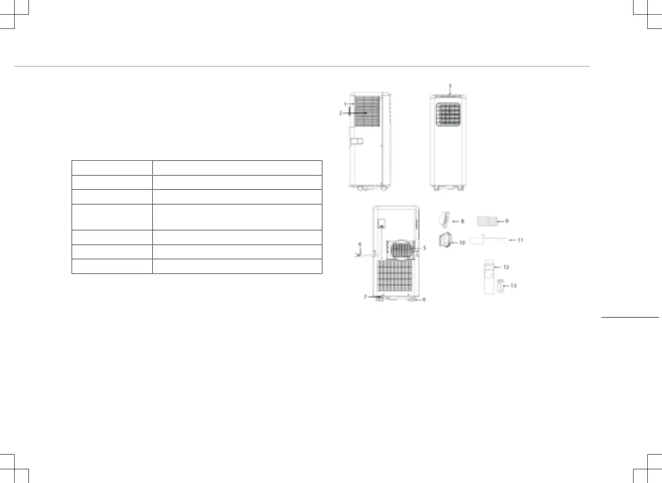 3. Ovládací panel 10. Konektor hadice (strana klimatizace)