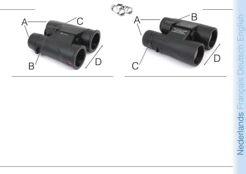 met de dioptrie-instelling (C). Deze vindt u achter