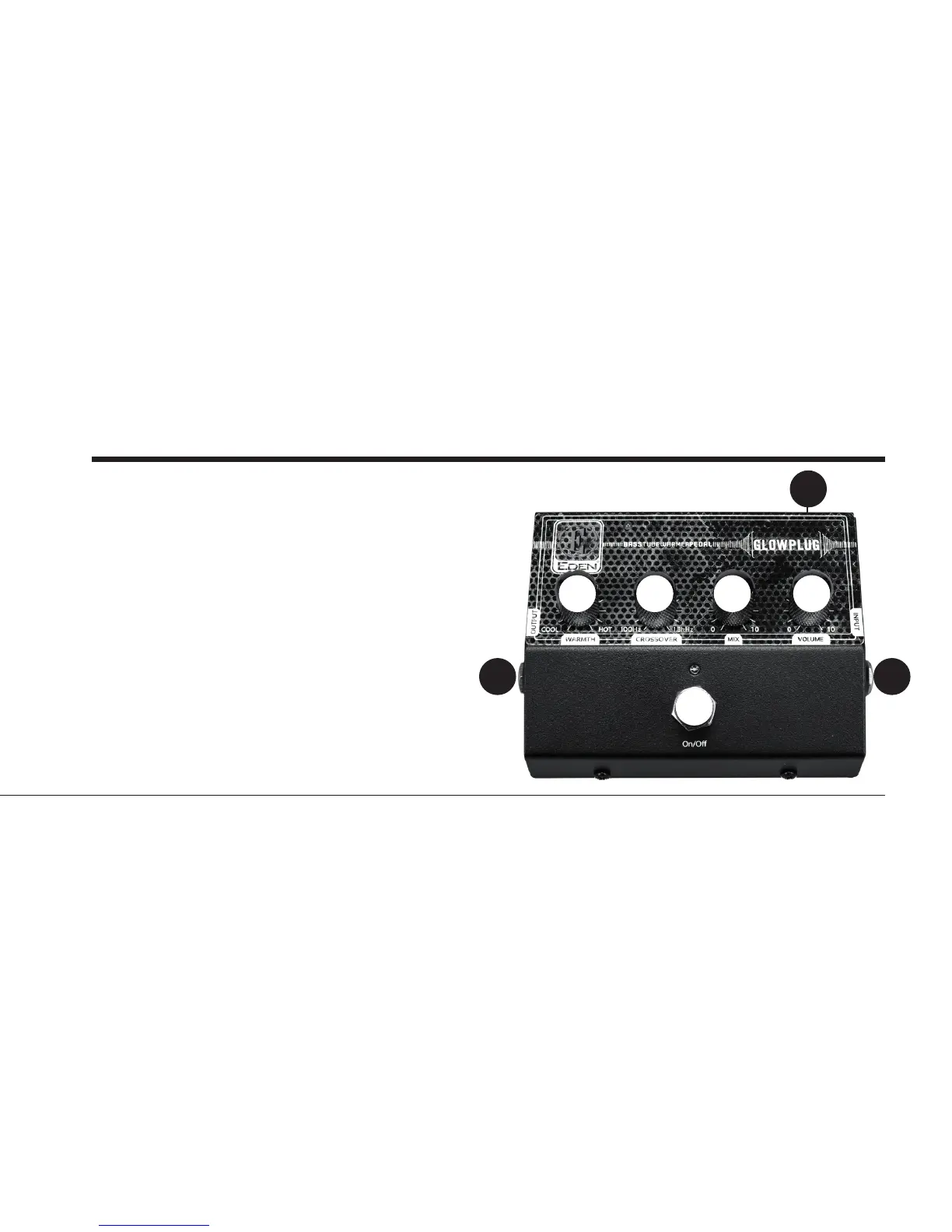 2. WARMTH:チューブ・ゲインの量を調整します。右に回す程