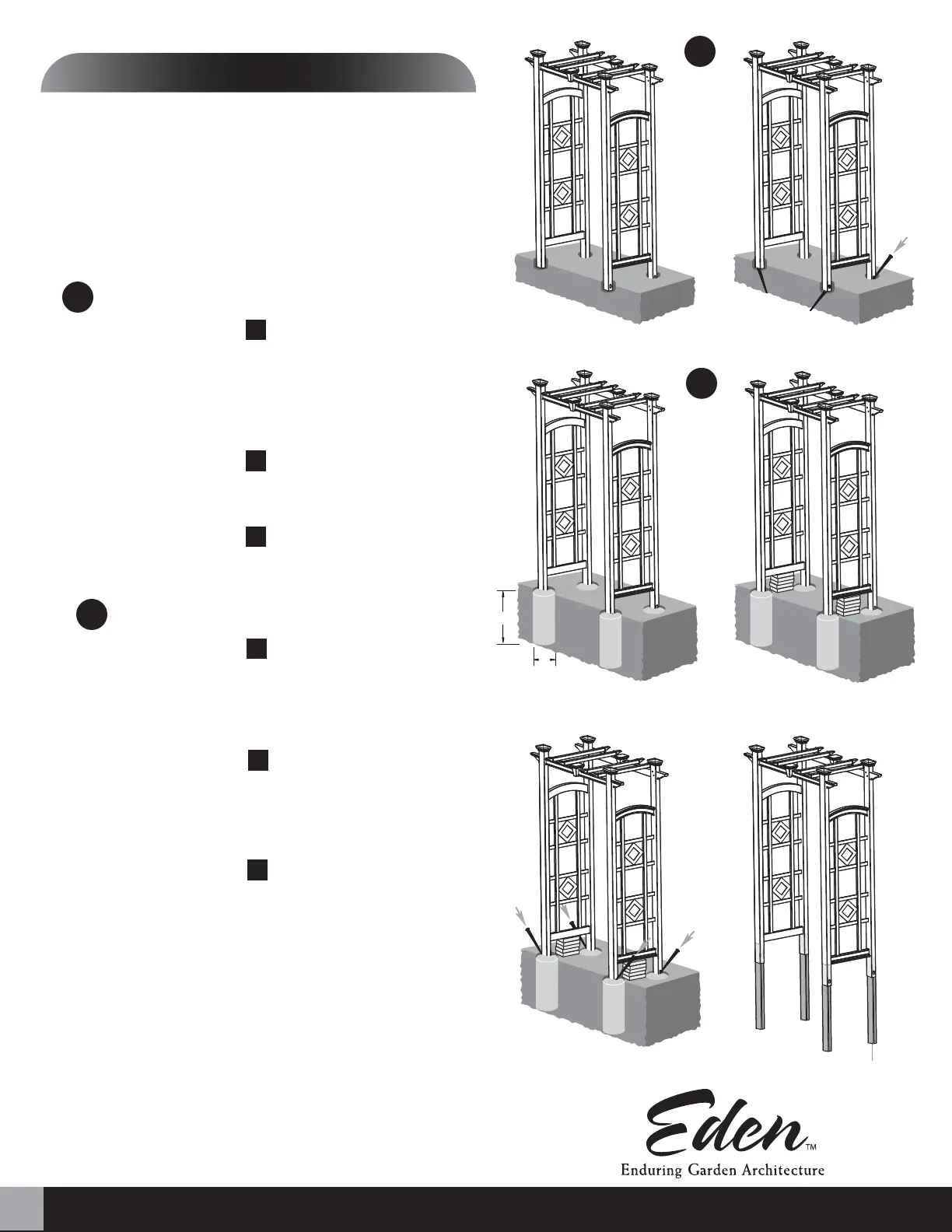 Excavate 4 holes approx 3” deep. Carefully move the arbor back