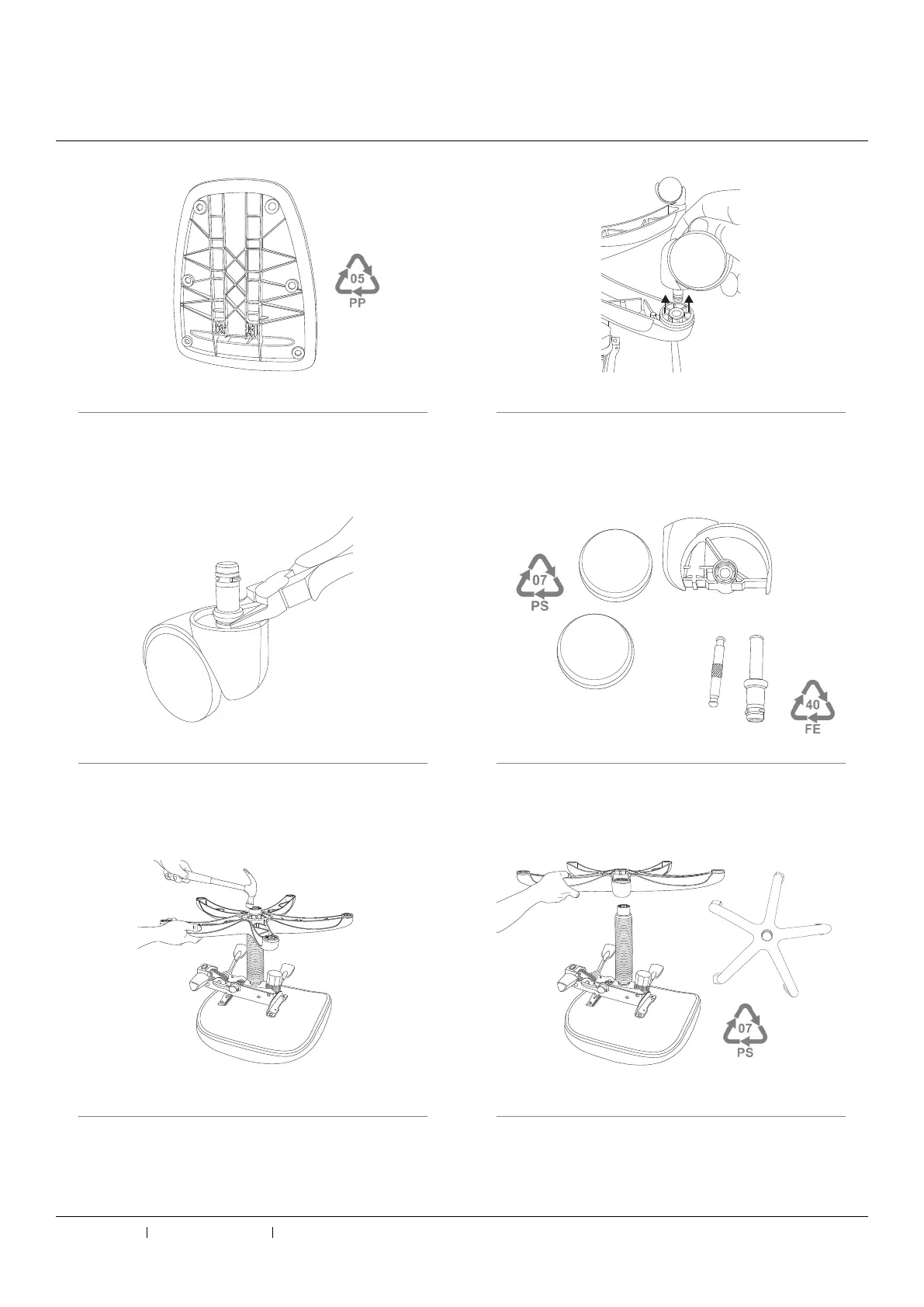 Pull castors out of 5-star base.Recycle plastic back inner.