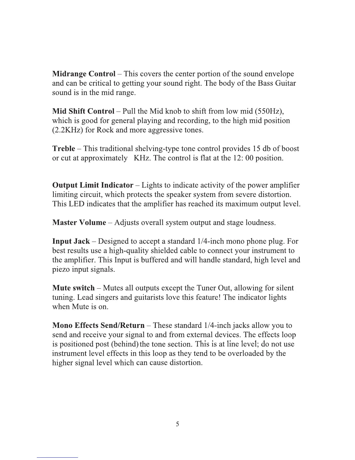 Eden WTX-264 - Midrange and Mid Shift Controls; Treble Control; Output Limit Indicator; Master Volume