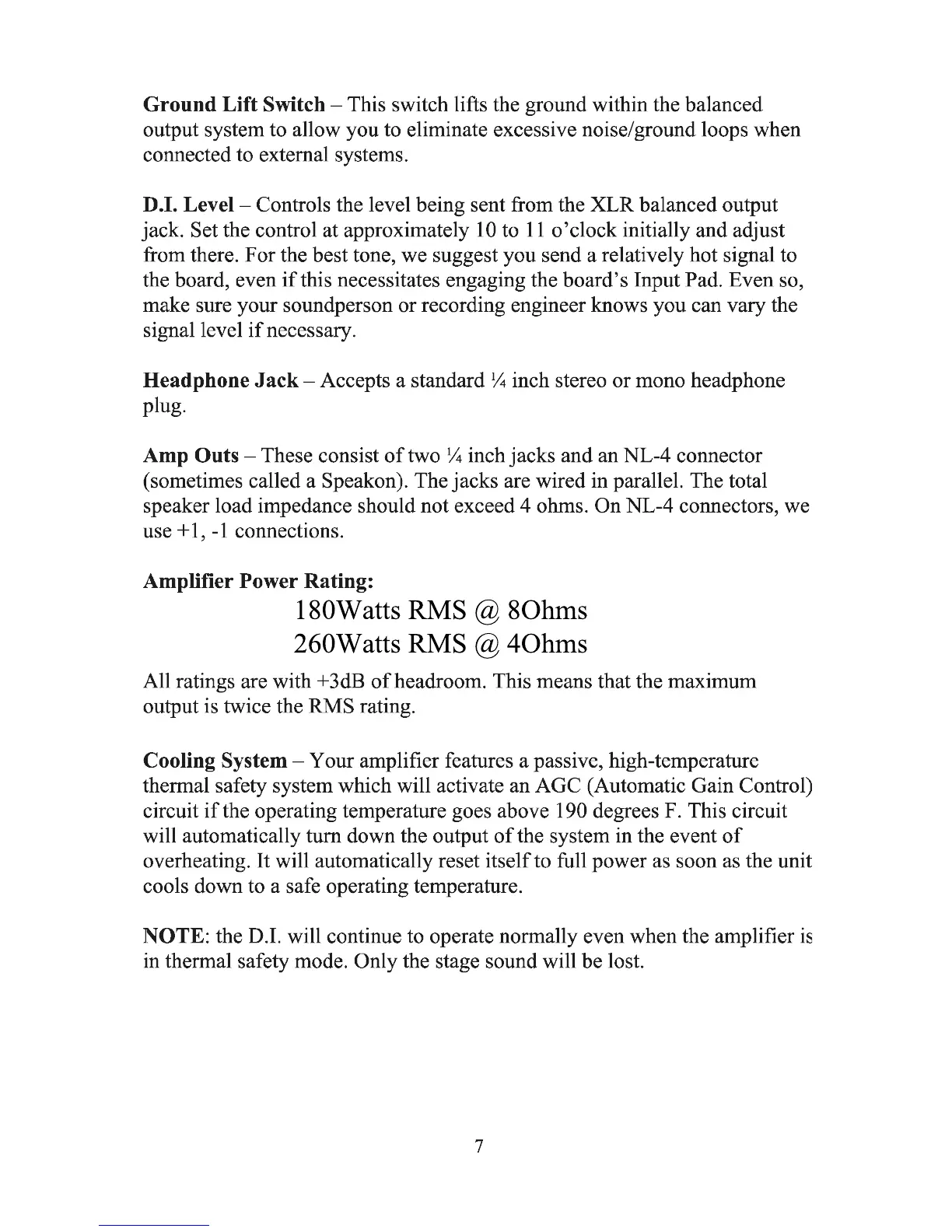 Eden WTX-264 - Ground Lift Switch; D.I. Level Control; Headphone Jack; Amplifier Outputs