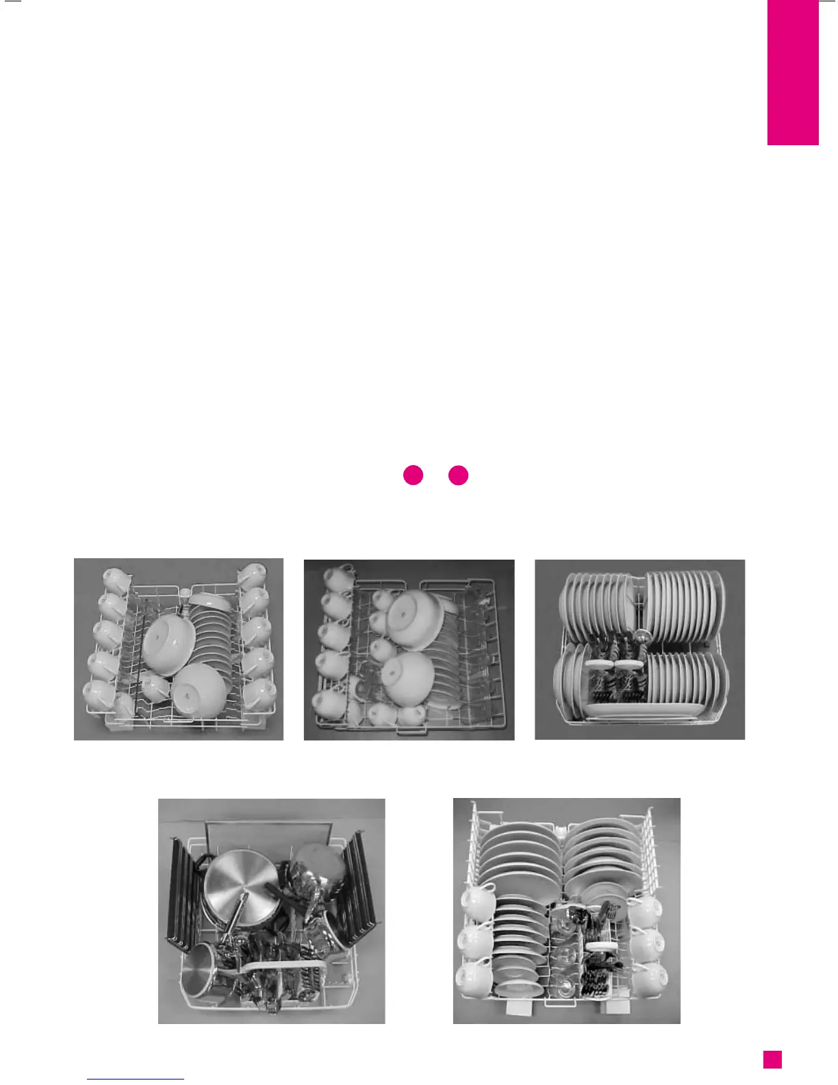- Le panier inférieur est prévu pour les pièces les plus sales et résistantes, casseroles, plats