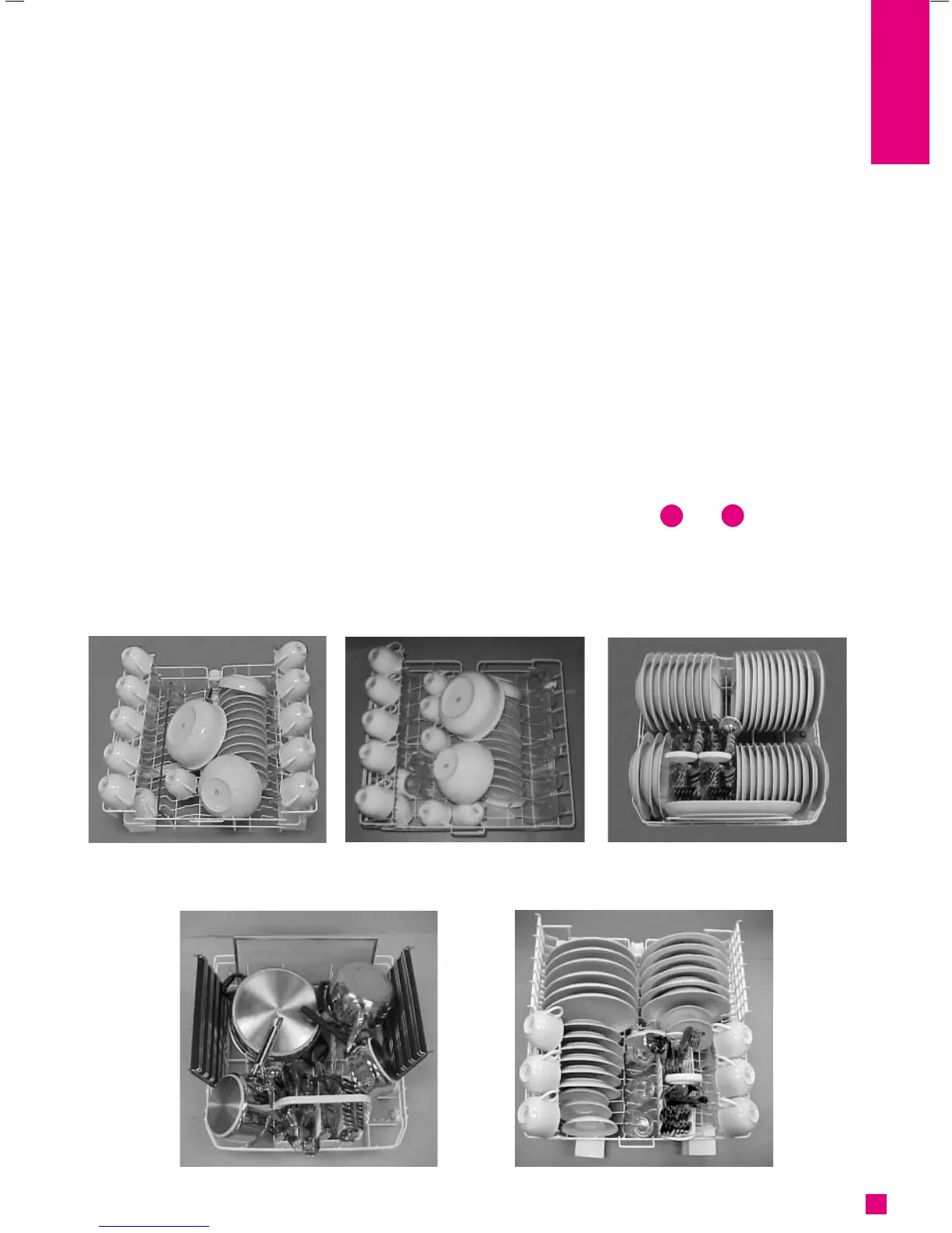 - Unterer Geschirrkorb: Stärker verschmutztes und widerstandsfähigeres Geschirr, Töpfe, Schüsseln,