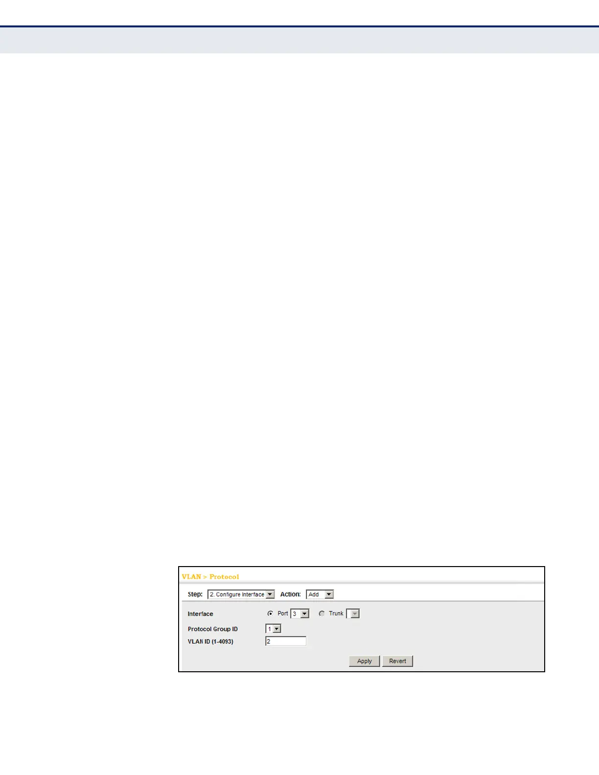 ◆ Protocol Group ID – Protocol Group ID assigned to the Protocol VLAN
