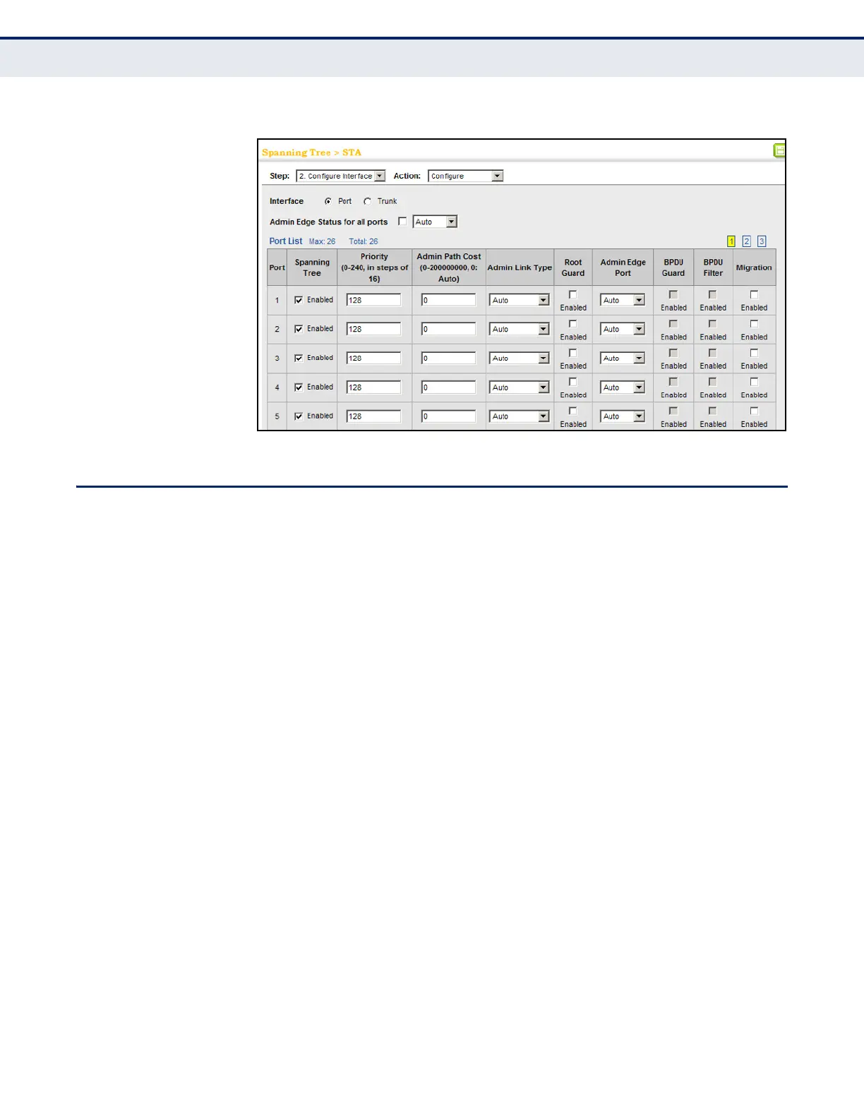 Use the Spanning Tree > STA (Configure Interface - Show Information)