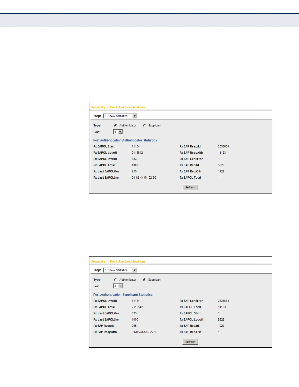Figure 192: Showing Statistics for 802.1X Port Authenticator