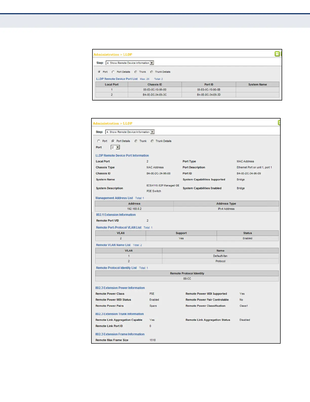 Figure 216: Displaying Remote Device Information for LLDP (Port Details)