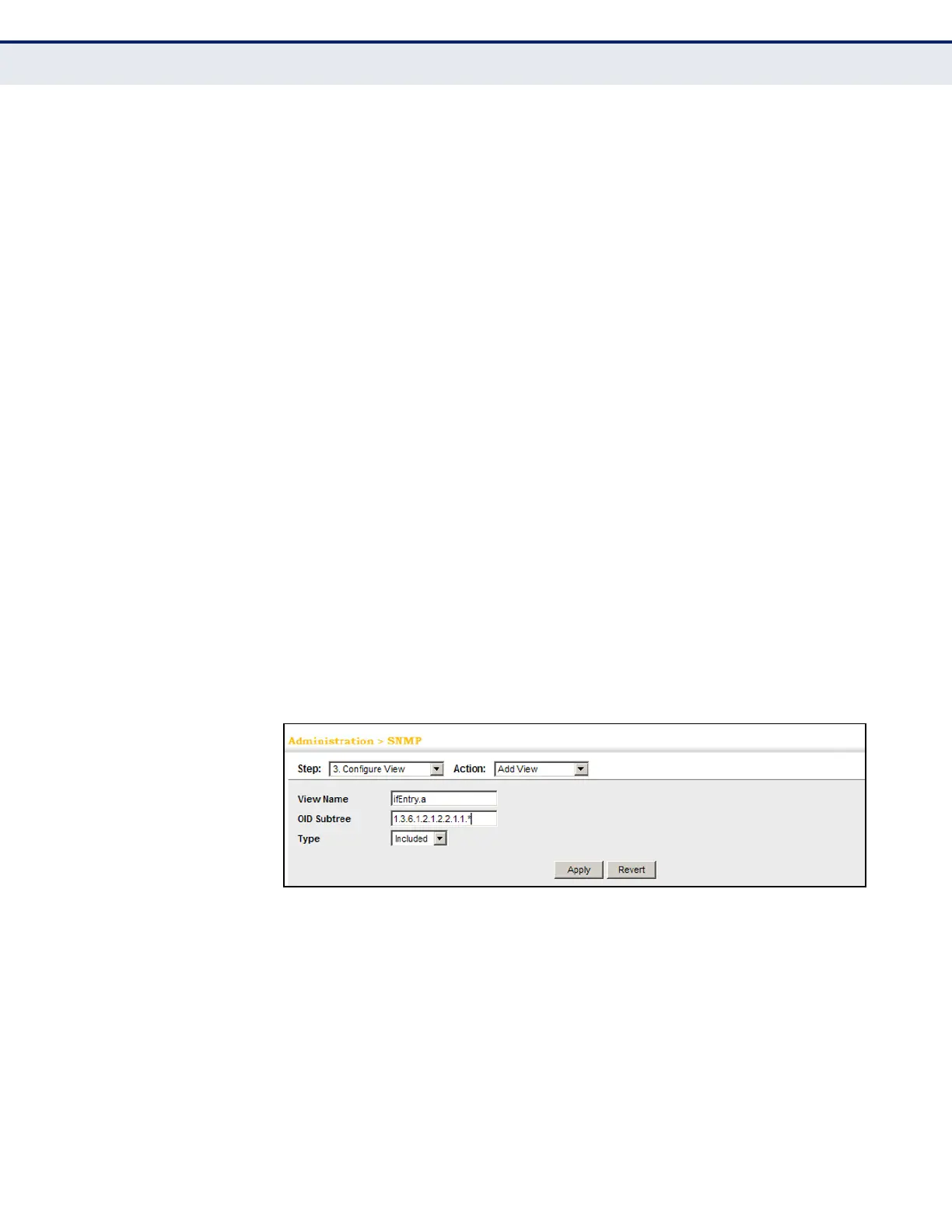 4. Enter a view name and specify the initial OID subtree in the switch’s