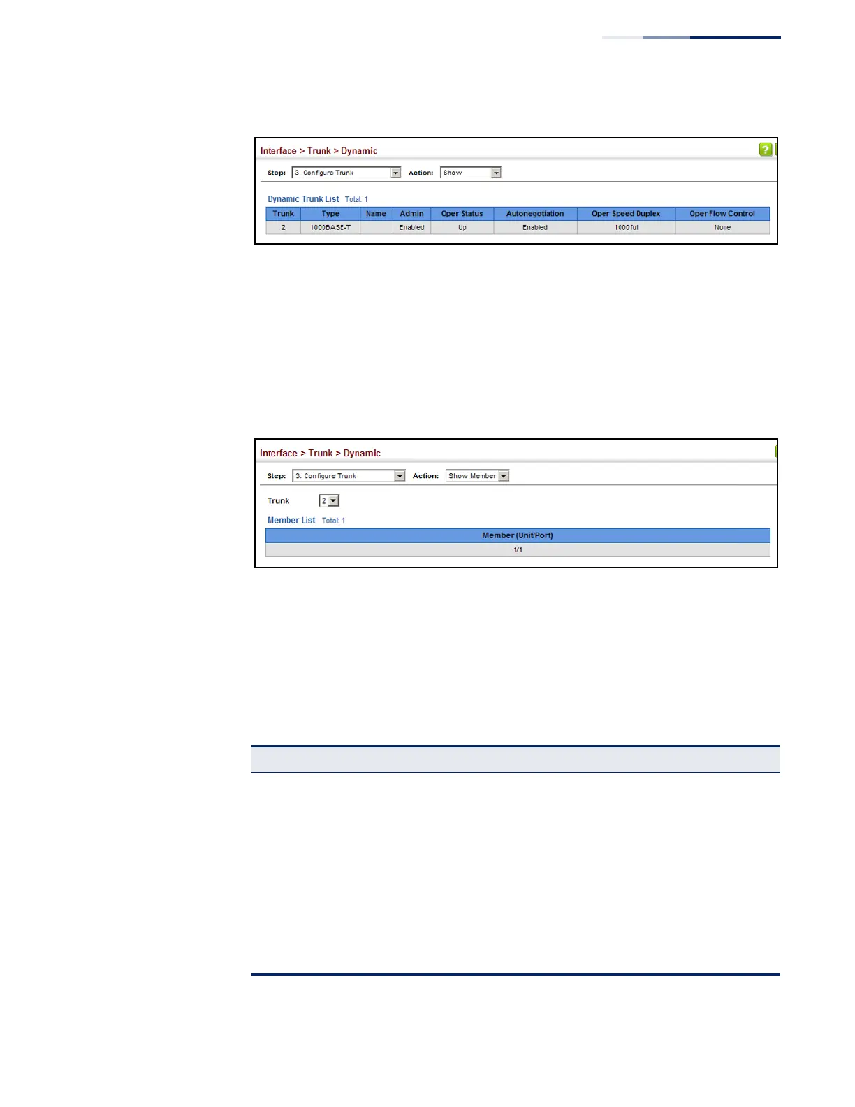 Use the Interface > Trunk > Dynamic (Configure Aggregation Port - Show