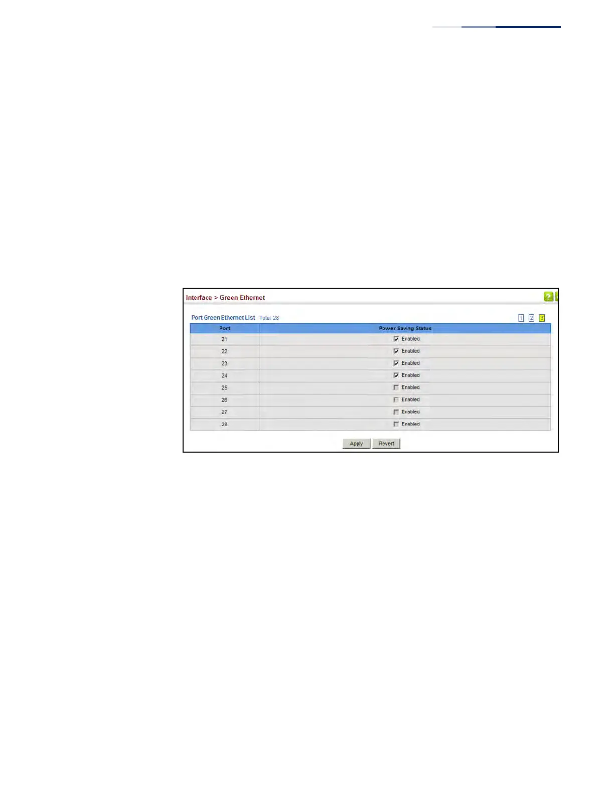 ◆ Power Saving Status – Adjusts the power provided to ports based on the