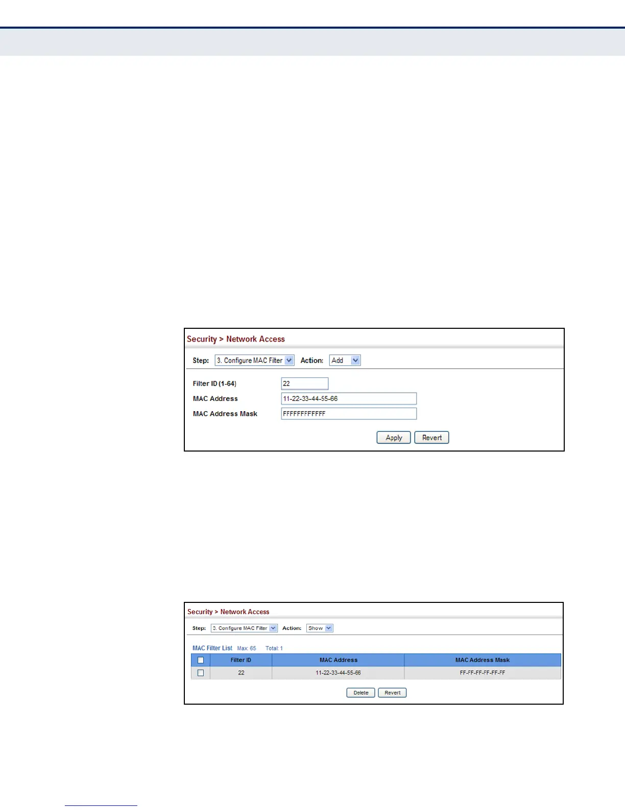 Figure 157: Configuring a MAC Address Filter for Network Access