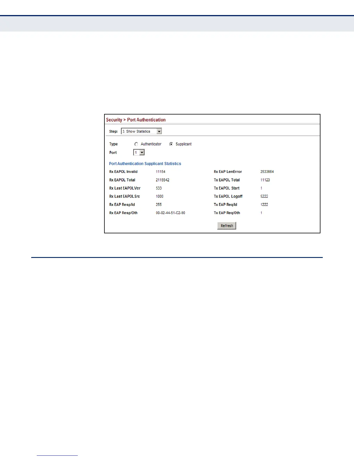 Figure 192: Showing Statistics for 802.1X Port Supplicant
