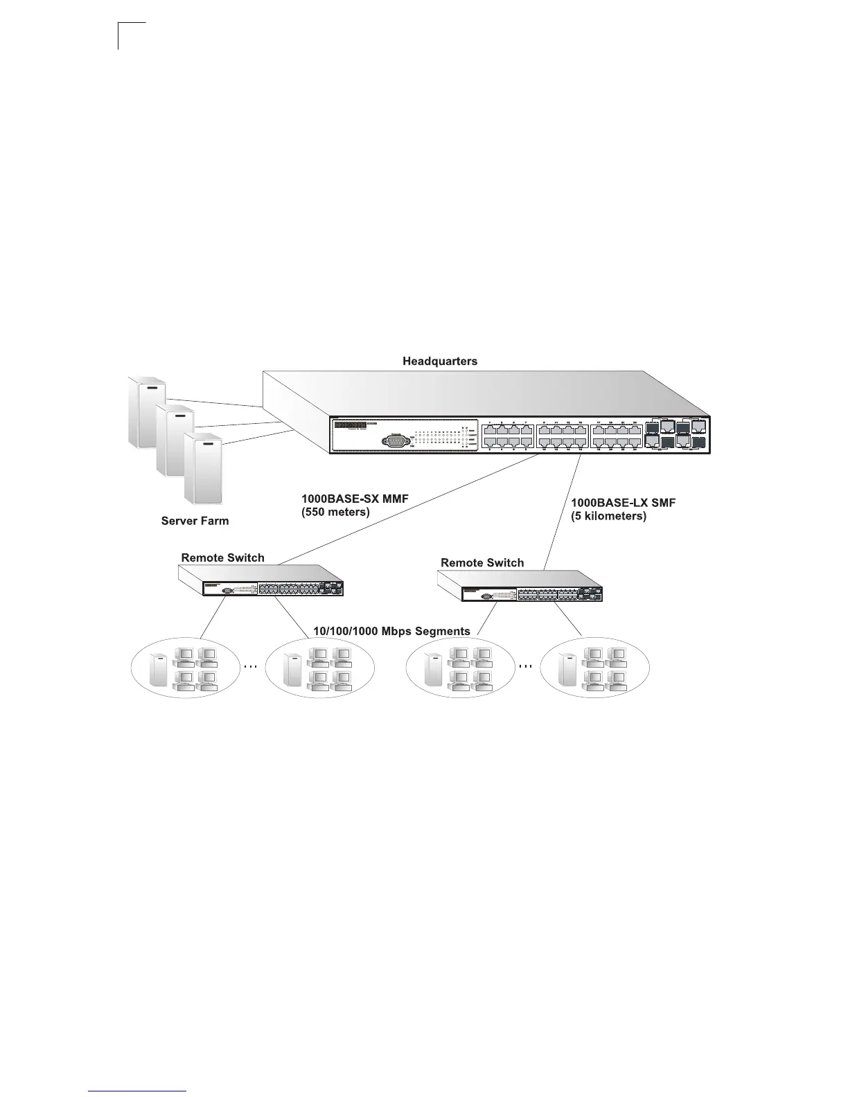 The figure below illustrates the switch connecting multiple segments with fiber cable.