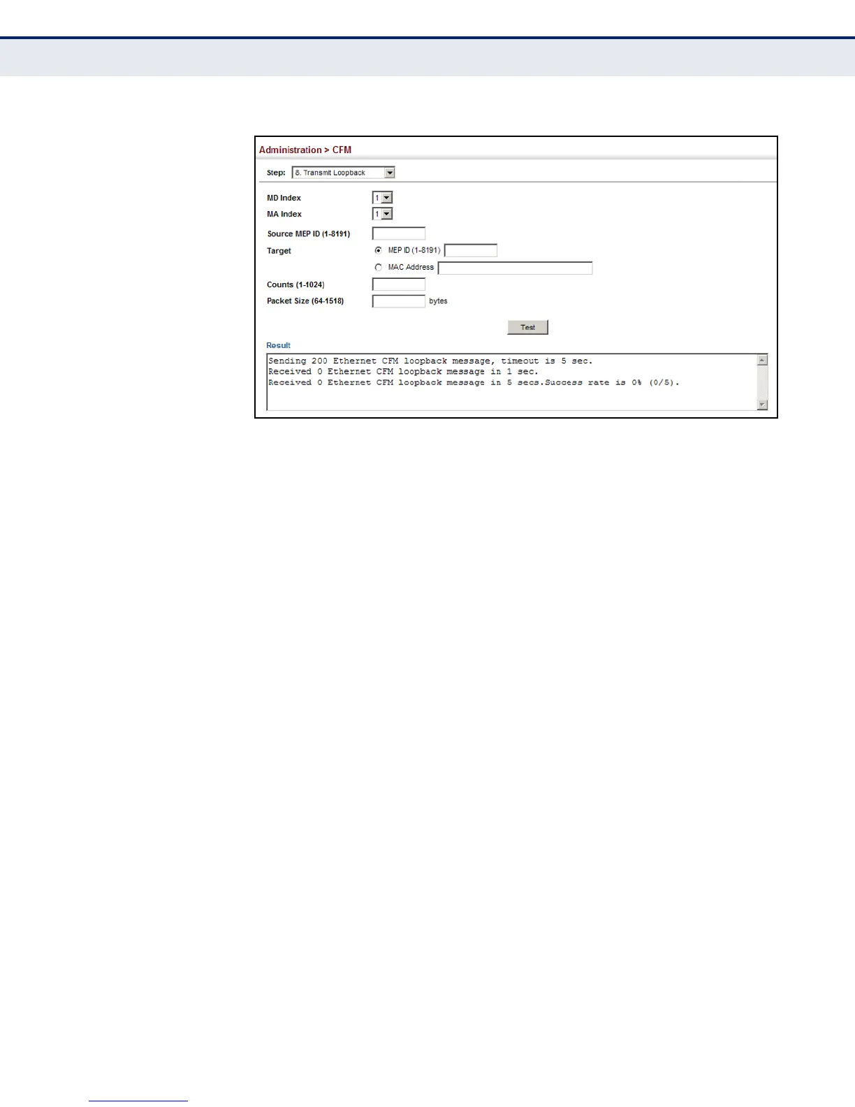 Use the Administration > CFM (Transmit Delay Measure) page to send