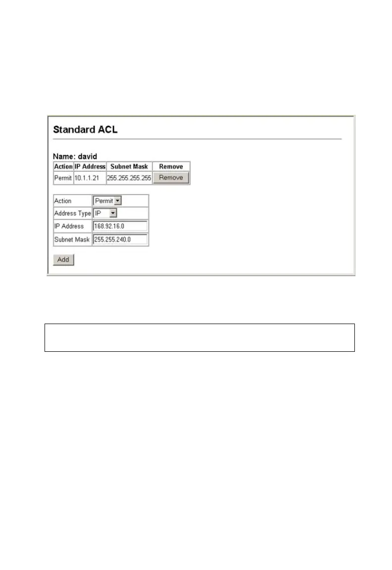 Console(config-std-acl)#permit host 10.1.1.21 4-124