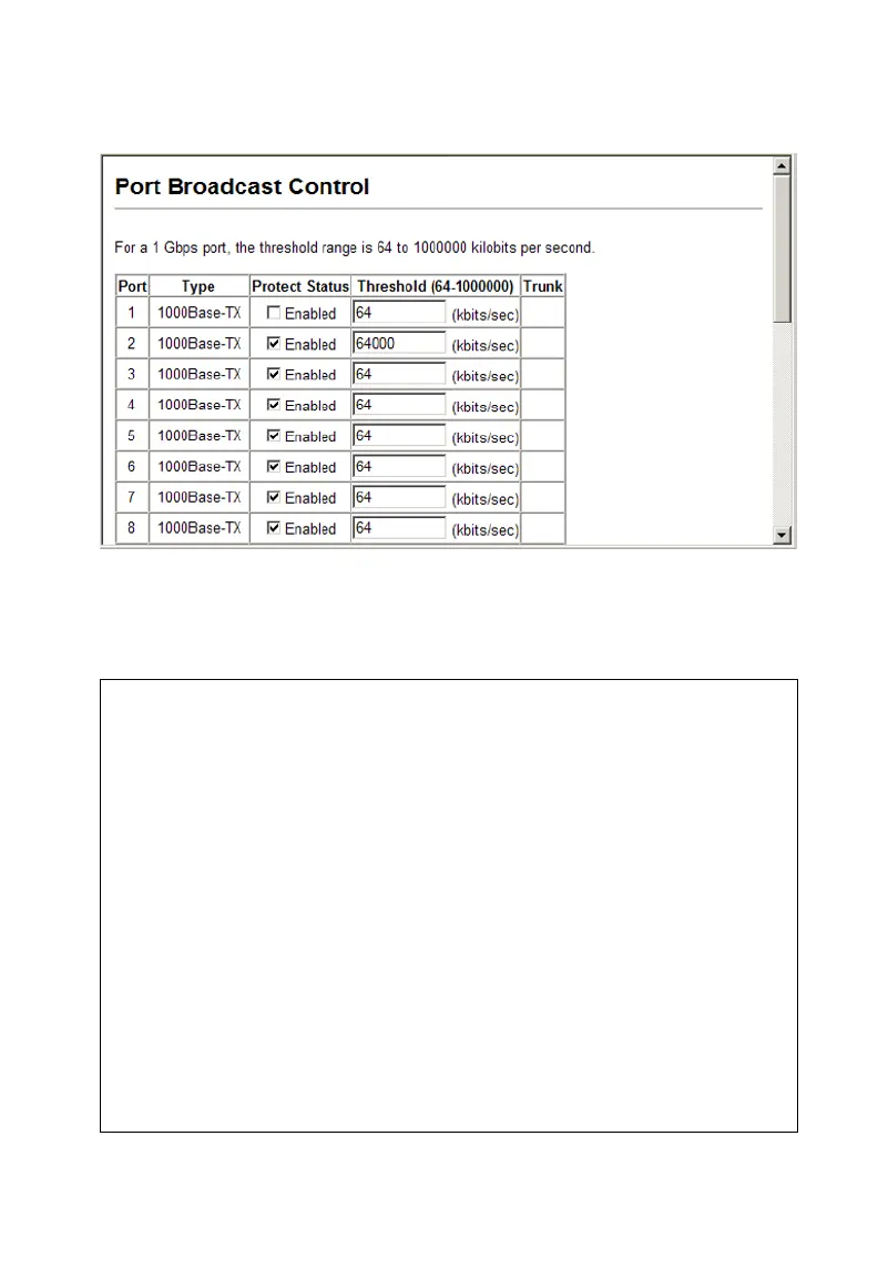 Web – Click Port, Port Broadcast Control or Trunk Broadcast Control. Set the