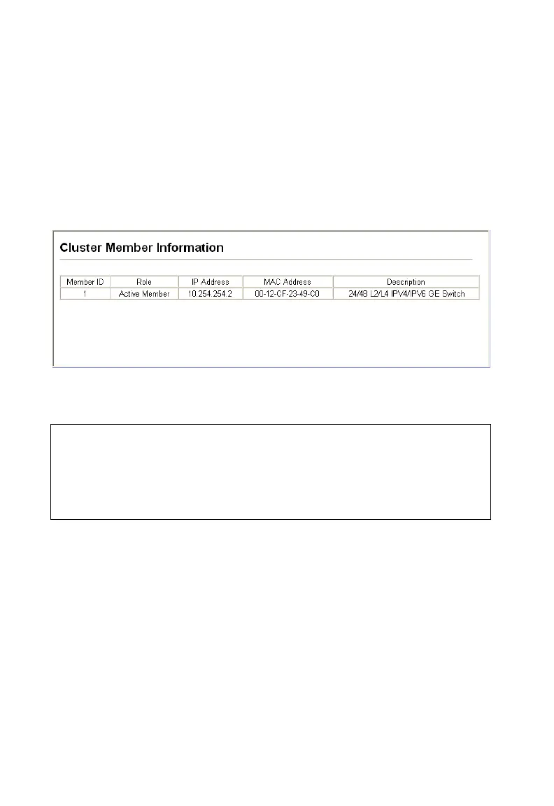 • IP Address – The internal cluster IP address assigned to the Member switch.
