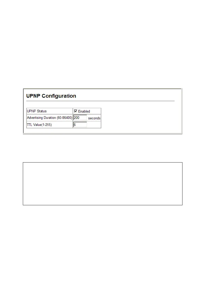 • TTL Value – Sets the time-to-live (TTL) value for UPnP messages transmitted by