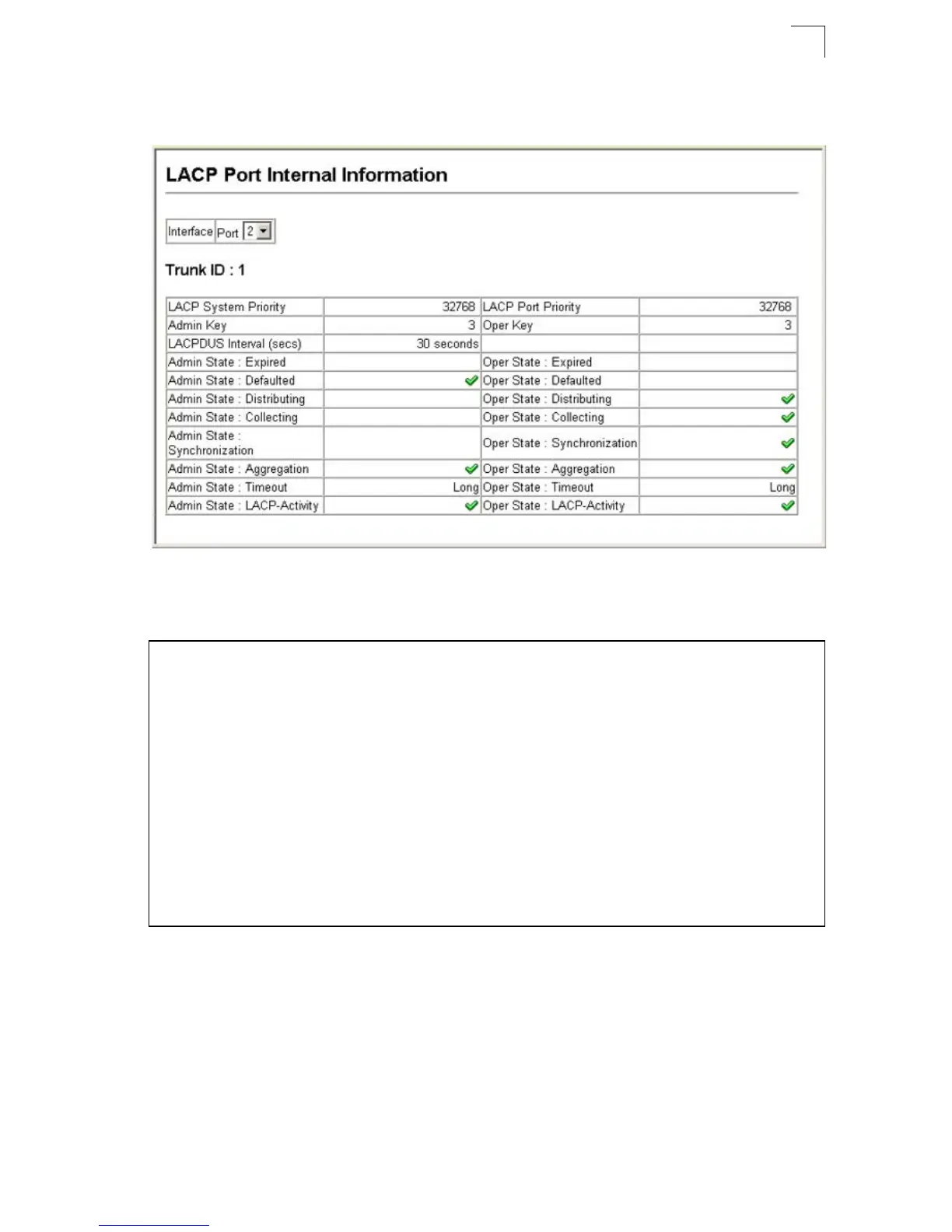 Web – Click Port, LACP, Port Internal Information. Select a port channel to display