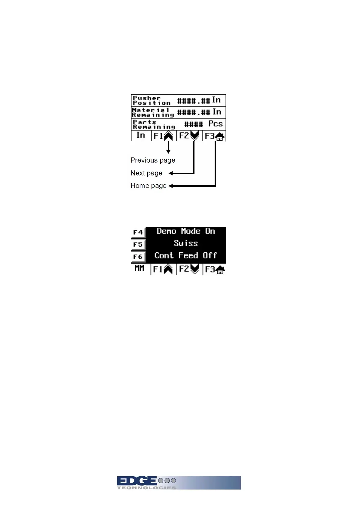 access. By pressing the indicated F key for the parameter the mode options will toggle though