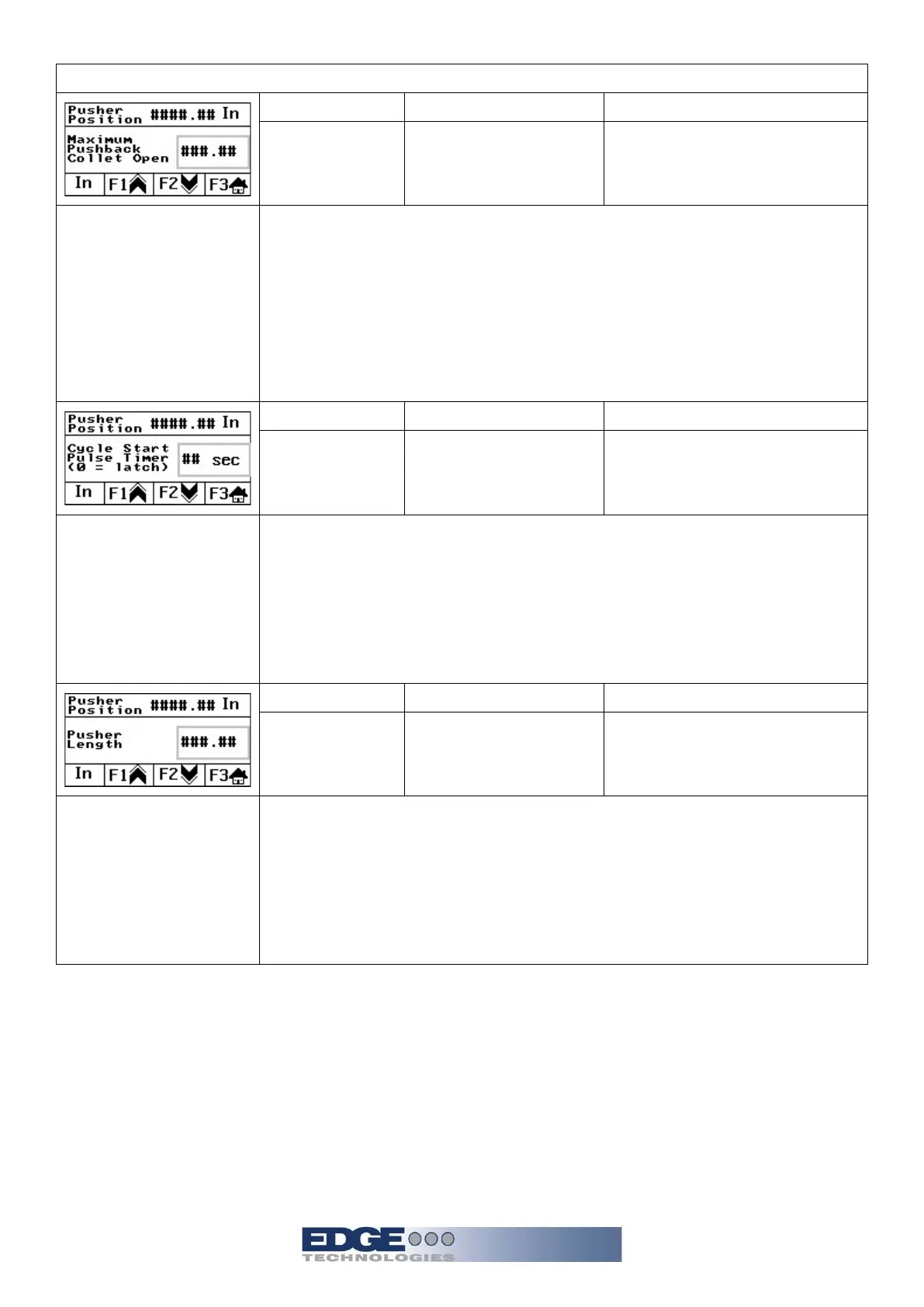 Measure from the prefeed pusher to the end of the pusher collet. Input