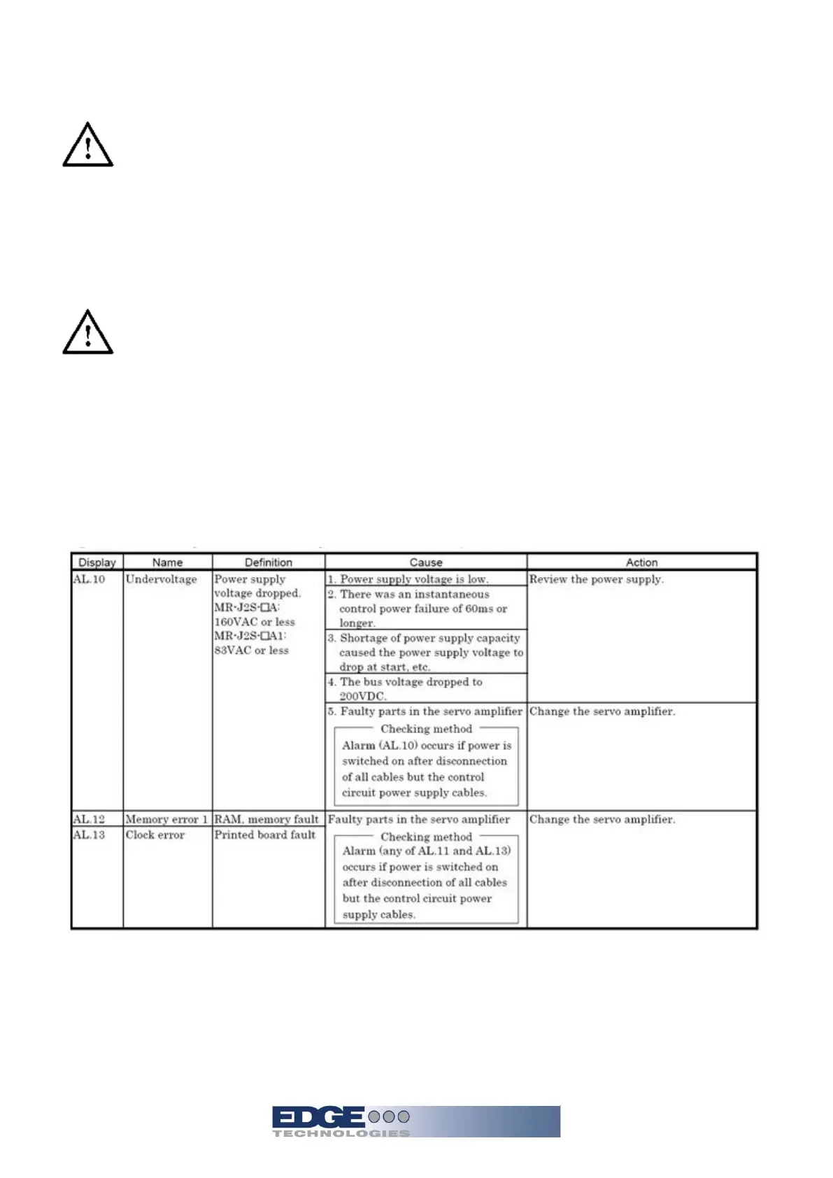 should attempt to diagnose internal problems. Contact Edge Technologies for further